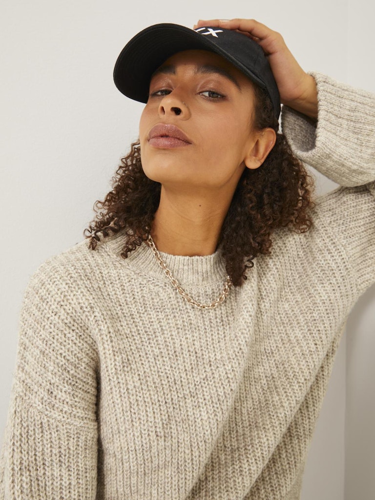 50% recycled polyester, 28% acrylic, 14% polyester 8% wool.