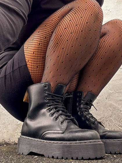 Fishnet tights with dot.